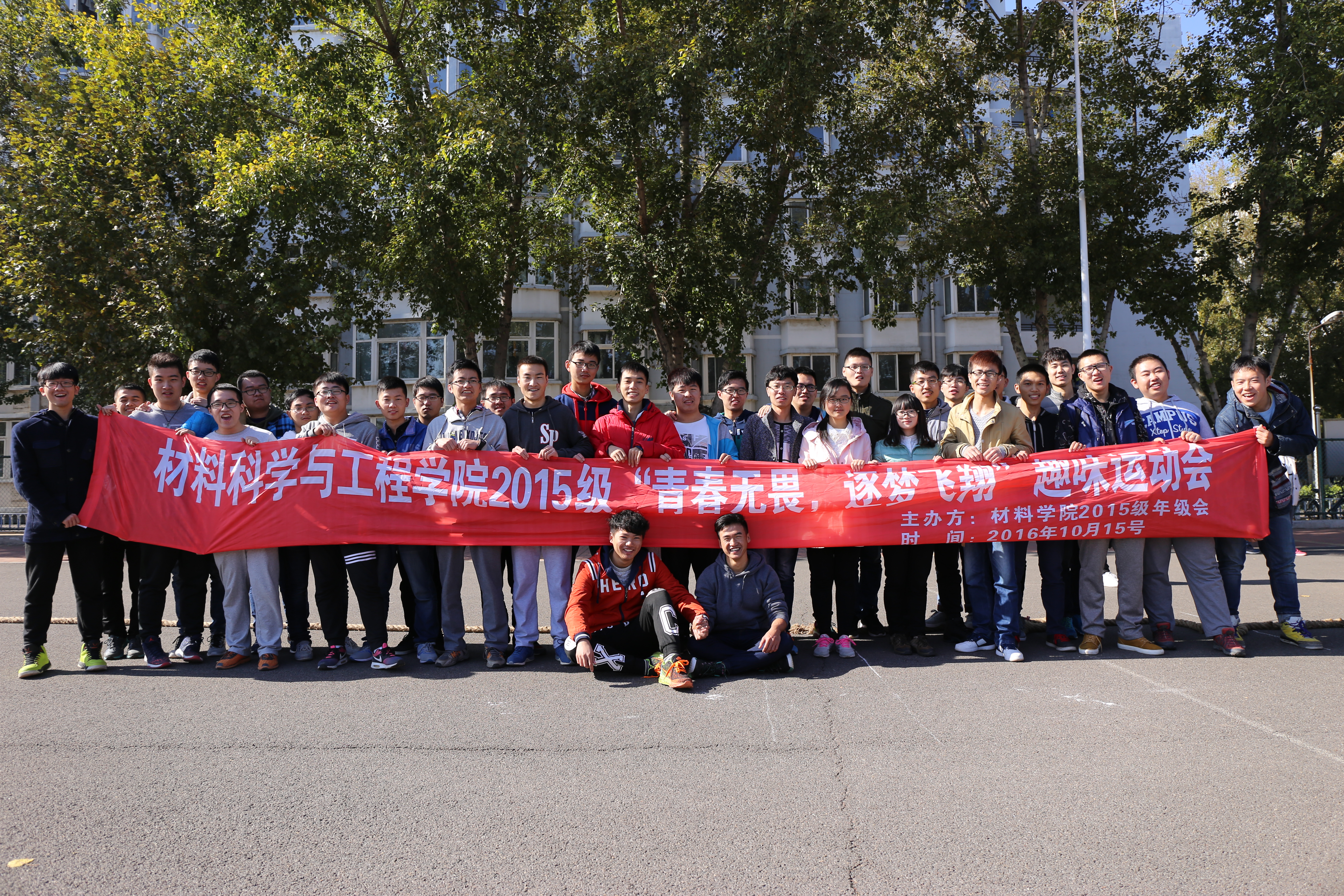 2015级年级会于2016年10月23日星期日,在五五体育场上举行了一场以“青春无畏,逐梦飞翔”为主题的趣味运动会。