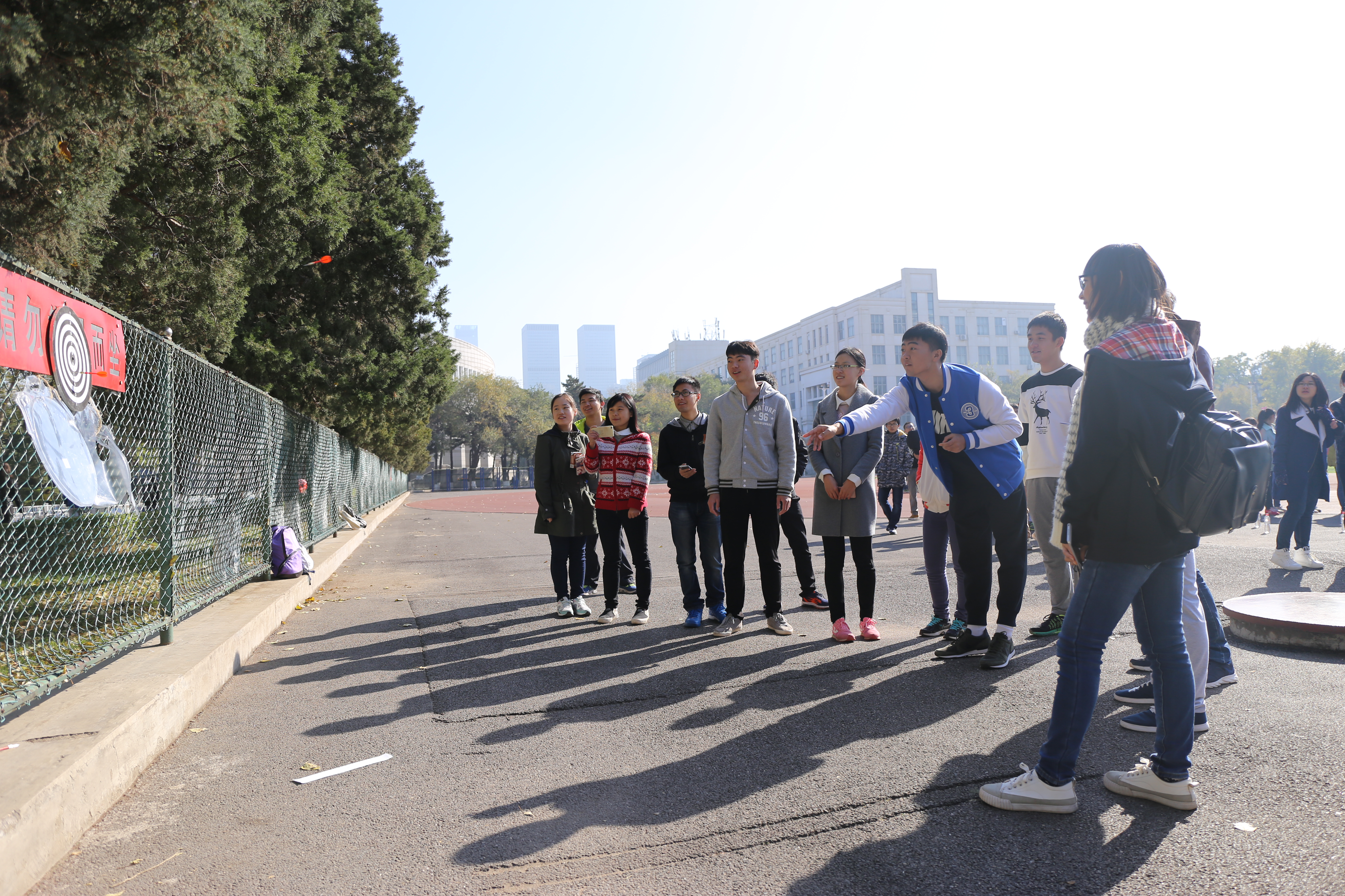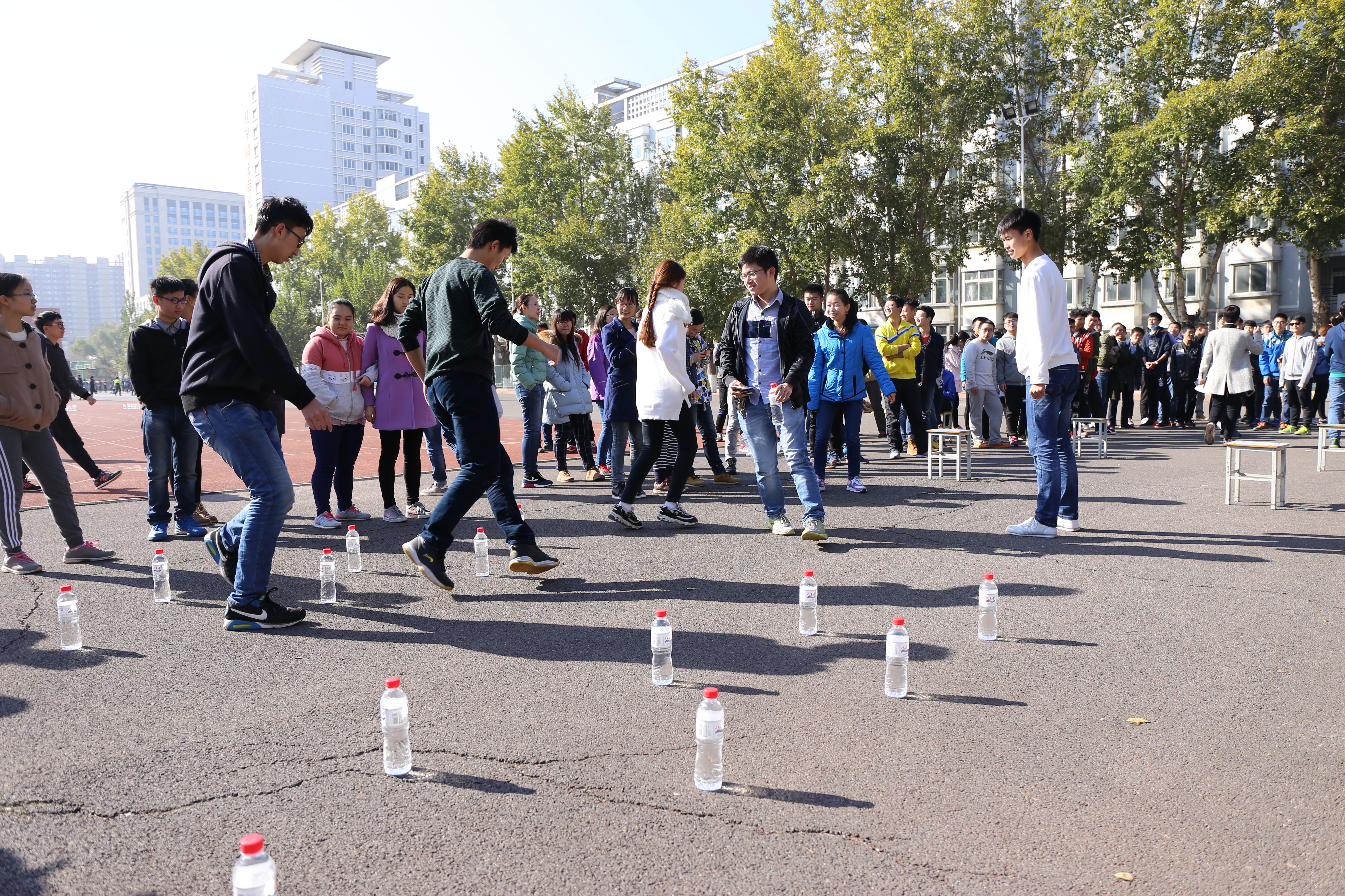 本次运动会共有五个趣味项目,分别是“飞镖夺宝”、“保龄球”、“100米障碍赛”、“跳长绳”和“拔河”。尽管室外寒冷,但广大材料学生们依然兴致盎然,争分夺秒联系比赛项目,认真进行热身赛等赛前准备。