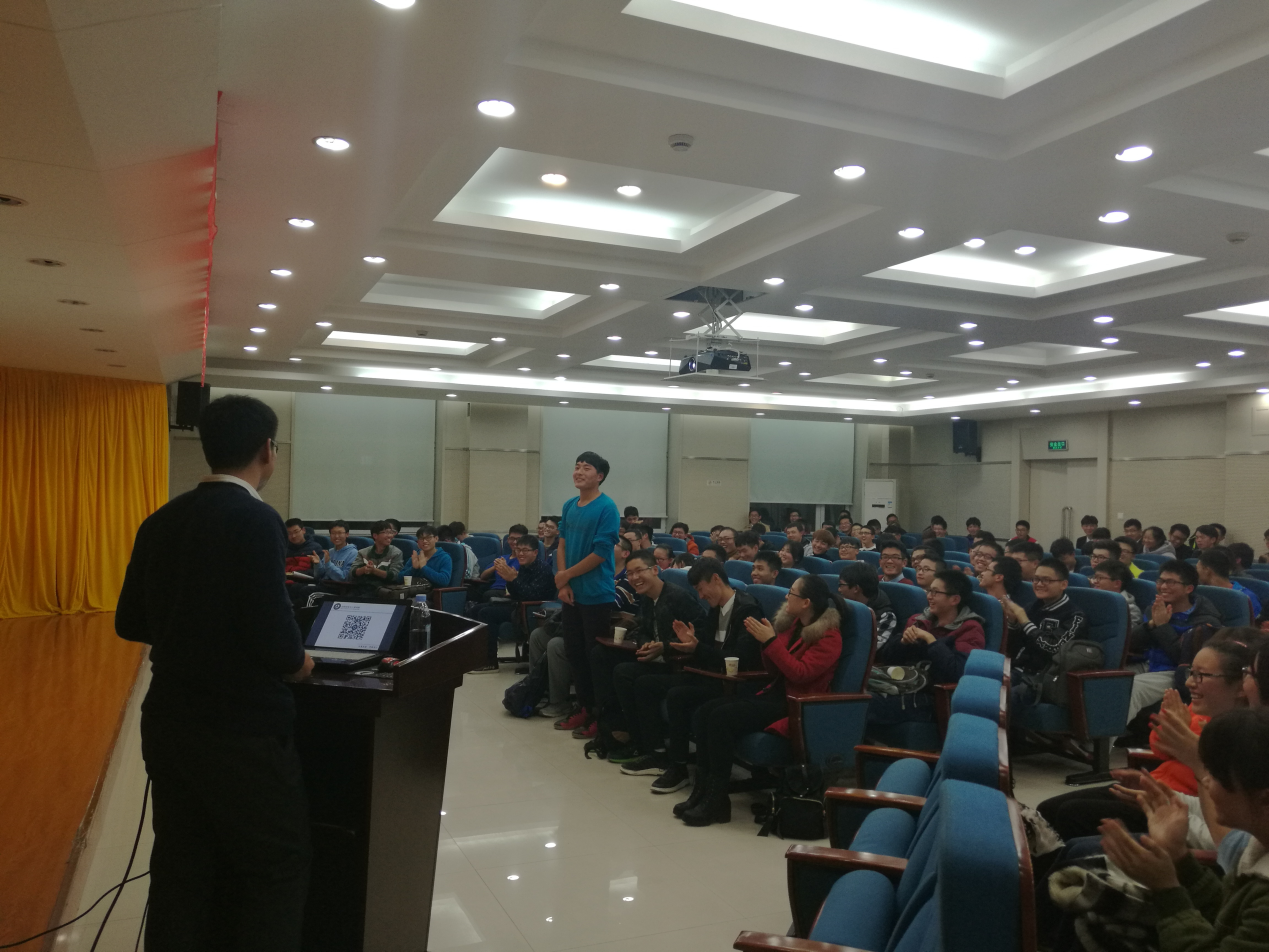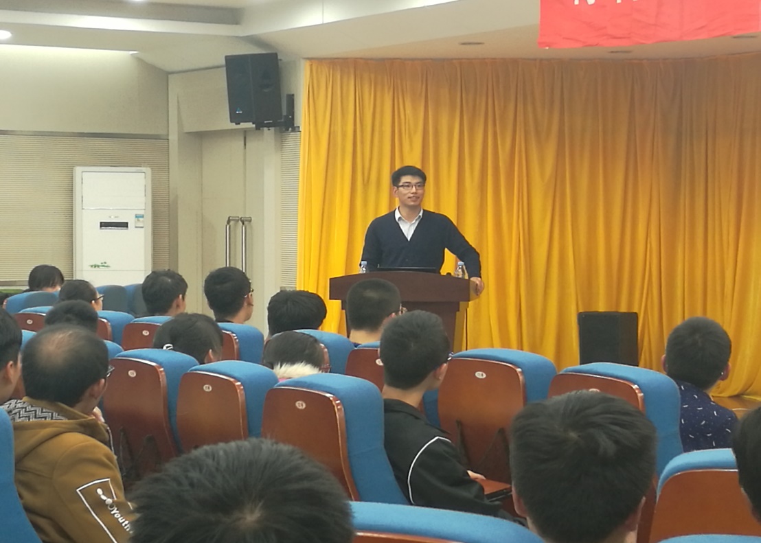 辅导员董磊老师讲述“大学生那些事”,董老师通过幽默风趣的语言以及生动形象的实例,讲述了自己对大学生活的看法,并从读研的途径,就业的前景等方面进行了深入讲解,鼓励同学们在大学要树立正确的人生价值观,养成良好的生活习惯,努力学习,刻苦钻研,实现自己的青春梦想。