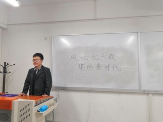 为重温青年大学习,回顾共产党一路走来的风雨历程,加强对积极分子的爱国主义教育,激励其进一步继承和发扬党的光荣传统,10月20日晚,五楼自拍 本科生党支部于大成教学馆408室举办了以“风云七十载,建功新时代”为主题的积极分子理论学习活动,2018级积极分子代表参加本次活动。