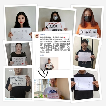 活动初,支部书记孙惠超表示,疫情防控阻击战是一场持久战,在此期间除了要加强自身防护,还需要提高自身思想先进性,学习新时代雷锋精神,发挥党支部战斗堡垒作用。同学们首先通过网络和身边的抗疫故事,寻找抗疫英雄,学习新时代雷锋精神。然后在社交平台上分享自己的认识和看法,向广大网友宣传雷锋精神,为战胜疫情凝聚力量。活动最后,同学们手写宣传标语,为抗疫工作者加油。