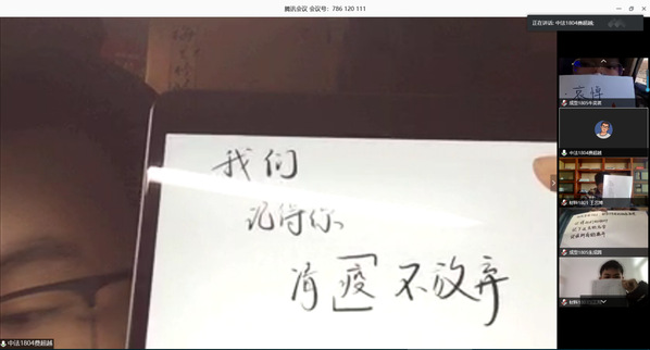 活动通过线上会议软件进行,同学们以PPT、视频等多种形式展示了十几位主动请缨,奋战于抗击疫情一线的共产党员烈士事迹,有以大爱诠释医者仁心的白衣战士、有以生命践行使命的公安干警、有用爱心守护家园的社区工作者。同学们了解到许多不曾听说的抗“疫”英雄,他们崇高的精神化作春露,滋润每一位与会人员的心。随后,三名积极分子代表分别从“身为大学生应该怎样做”、“烈士与其家庭做出的牺牲”与“团结一致才能办大事”三个角度,表达了自己对英烈们的缅怀与感激之情。活动临近尾声,正当十点,警笛长鸣,同学们全体起立,默哀三分钟,向牺牲烈士与同胞们致意。同学们举起手绘的祭祀纸,寄托对英烈们的哀思。