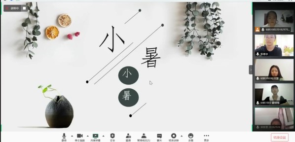 活动开始,主持人周琦开向大家介绍了二十四节气,二十四节气是我国先民通过观察太阳周年运动而形成的时间知识体系及其实践,是安排农业生产、协调农事活动的时间制度,也是顺天应时的生活指南。随后,大家以二十四个小组的形式进行节气相关科学文化知识的普及介绍,内容涉及综述、节气与农事、节气传统文化这三部分。通过知识介绍,与会同学都学习到了丰富的传统文化知识,纷纷表示,二十四节气体现了传统农耕文明的博大精深,以后要更多地关注中华文明传统文化,传承祖先流传下来的宝贵智慧。