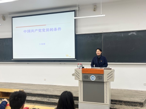 本次培训由方程程主持。培训开始,王海霞以党章为中心,为同学们介绍了中国共产党党员应具备的基本条件与党员的本质要求。随后,她结合《榜样》专题节目,引用典型事迹,为同学们描述了中国共产党人不畏艰险,攻坚克难,舍己为民,甘于奉献,主动投身到新时代伟大斗争之中的精神。最后,王海霞通过对比先锋与先进的区别,为同学们讲解了“全心全意为人民服务”的深刻含义,并希望同学们真正承担起新时代青年的使命与责任,让青春年华在为国家、为人民的奉献中焕发出绚丽色彩。