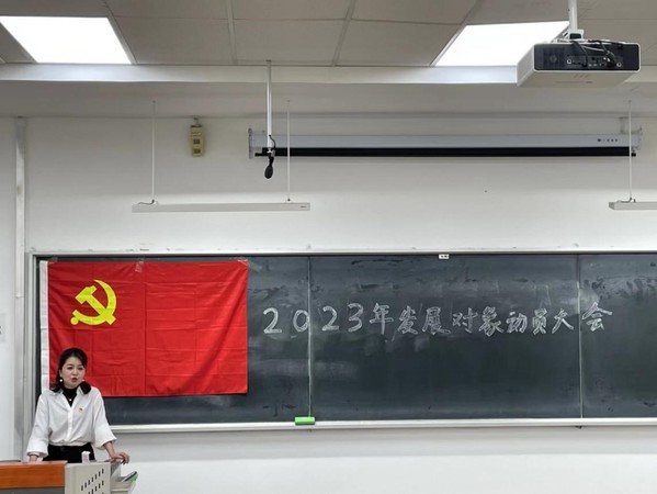 为贯彻落实《中国共产党员发展党员工作细则》总体要求,引导发展对象增强政治意识、大局意识、核心意识、看齐意识,强化发展对象的政治理论素养和党性思想觉悟,进一步提升学院组织发展党员工作质效,4月11日中午,五楼自拍 学生党总支于何世礼教学馆210召开2023年上半年发展对象集中培训动员大会,五楼自拍 党委组织员商淼以及2023年上半年全体发展对象参加此次会议。