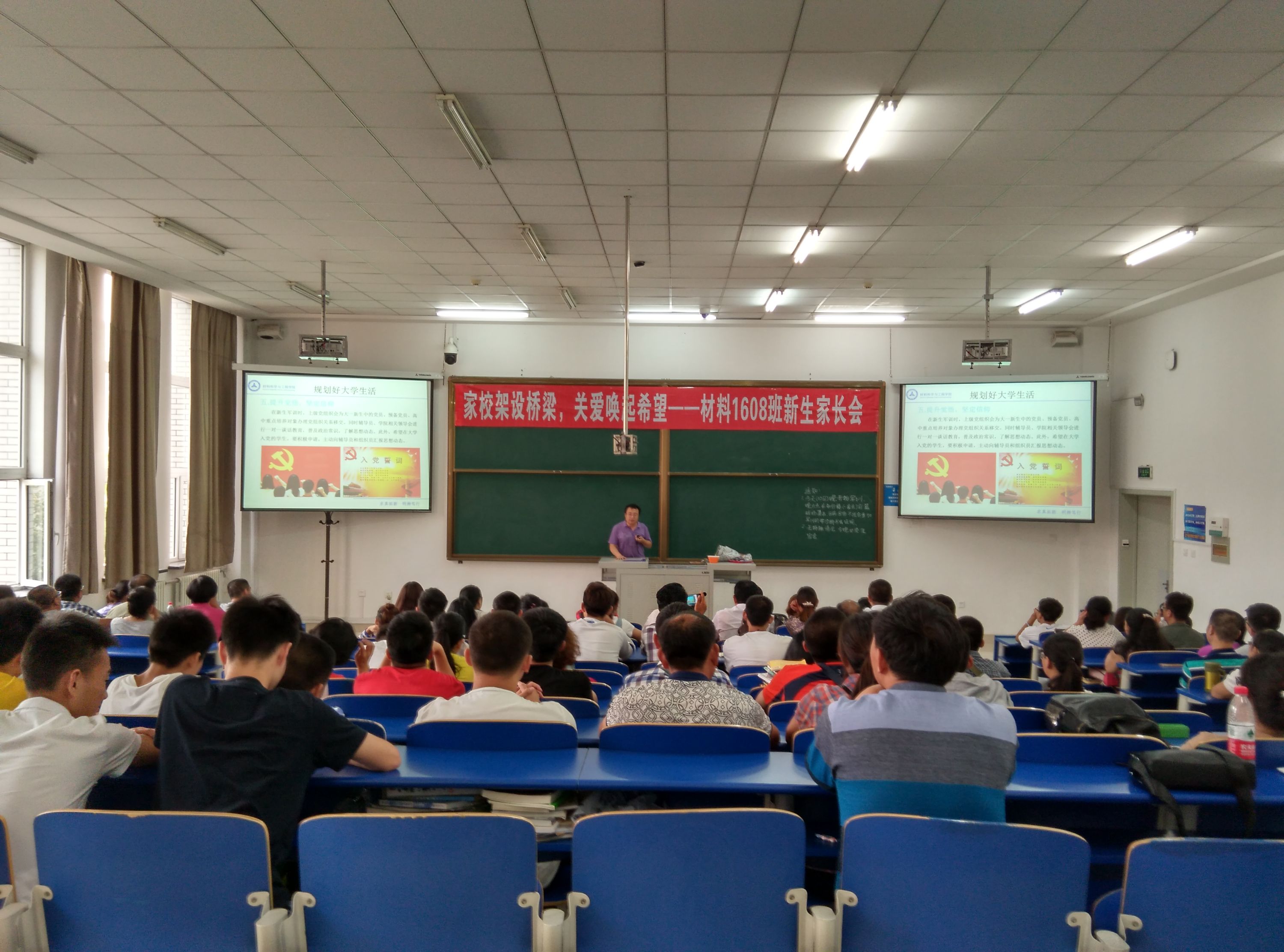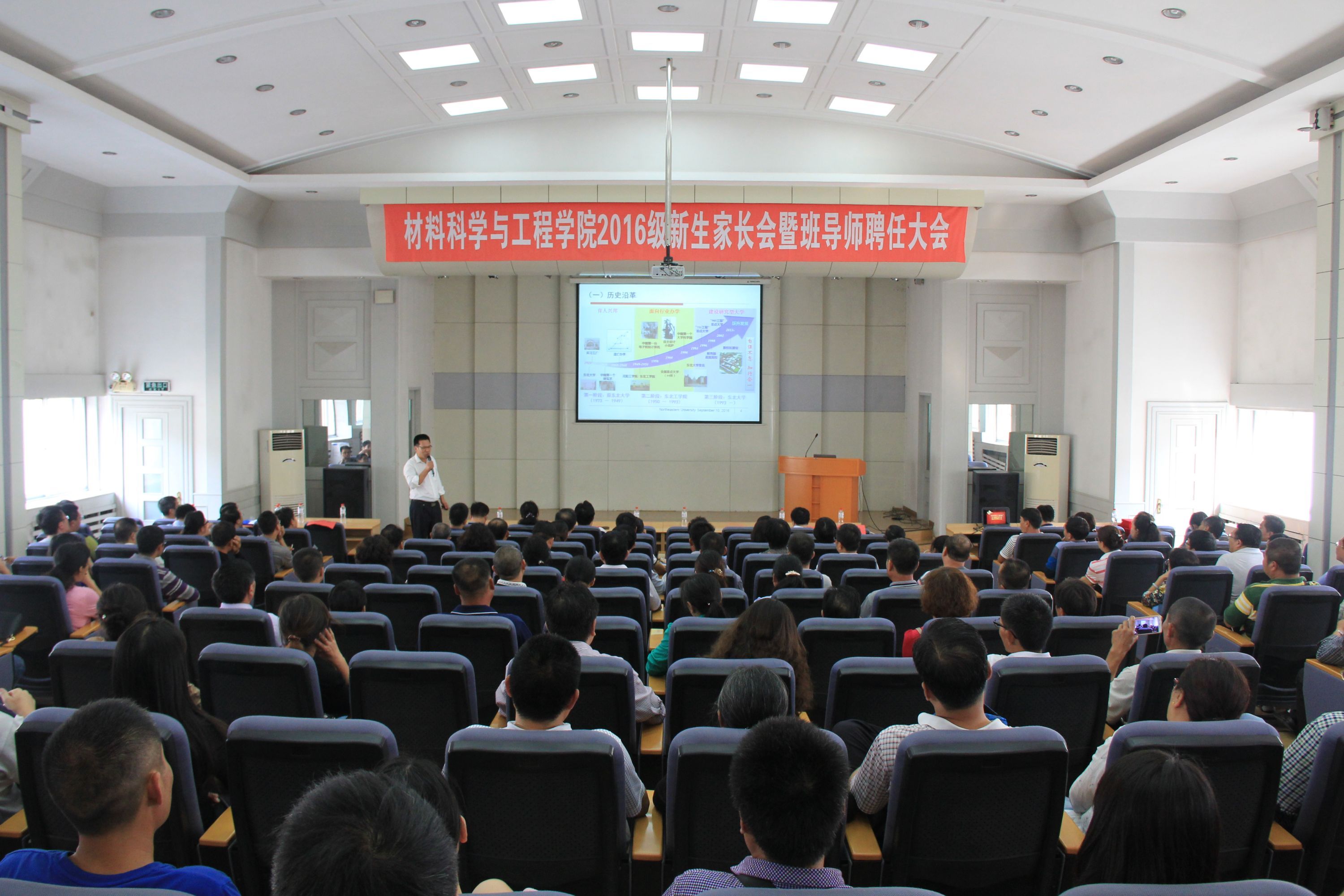 在金属材料方面取得了斐然的成绩;自学院新成立以来,在沿袭老一辈“材料人”吃苦耐劳精神的基础上,力求开拓创新,进一步合理分配教学资源,开展新型联合培养,逐步实现“产学研”三位一体化;学院设置各类奖项鼓励广大师生继续在科研的道路上勇攀高峰,努力用实际行动践行“厚德为料,铸智成材”的院训、“求真拓新 明辨笃行 ”的院风;最后就“学生从大学里应该得到什么?”等四个问题与家长们进行探讨。